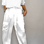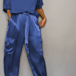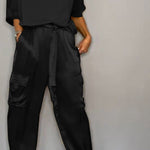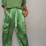 Emmy stil, predivan satenski komplet – savršen za proleće i leto! Ova kombinacija od 100 % satena je idealna za ležerne prilike. Kombinujte gornji deo i pantalone za ležeran izgled koji pruža stil i udobnost. Sa Emmynim kompletom ste spremni za svaki dan, elegantni i udobni.