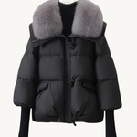 Vela puffer jakna spaja luksuznu toplotu sa čistom, modernom siluetom. Široka, voluminozna kragna od veštačkog krzna daje elegantan pečat i pouzdano štiti od hladnoće. Visokokvalitetno, debelo punjenje sa dvostrukom unutrašnjom postavom pruža dodatnu toplotu tokom hladnih zimskih dana, dok dugi rukavi sa rebrastim manžetnama sprečavaju prodor hladnog vazduha i povećavaju udobnost nošenja. Bilo da je nosite ležerno tokom dana ili elegantno u večernjim prilikama – ova jakna kombinuje funkcionalnost i profinjenu eleganciju, prateći vas sa stilom kroz zimu.